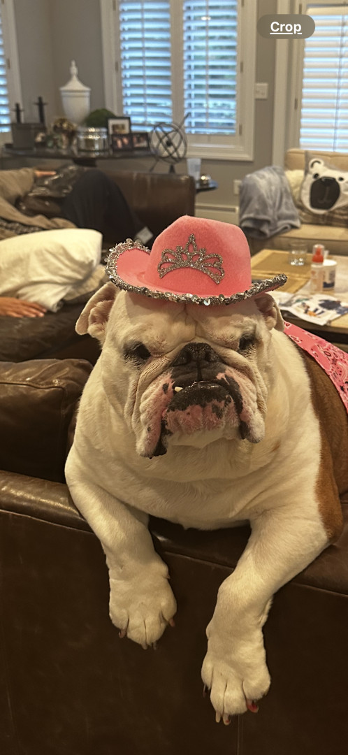 This English Bulldog reigns supreme as the undisputed Queen of the house, a stubborn monarch with a heart full of charm. Lazy by nature, she