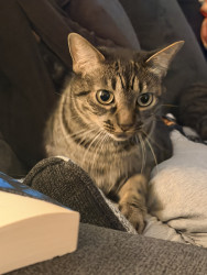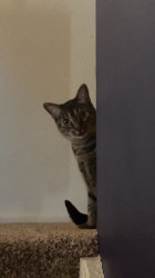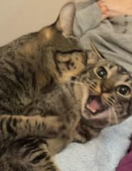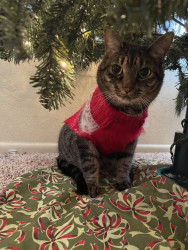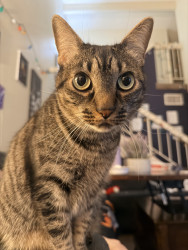 She is the most well-behaved cat, she does not bite, scratch, hiss, or steal food. She needs her area clean or she’ll make it clean herself.