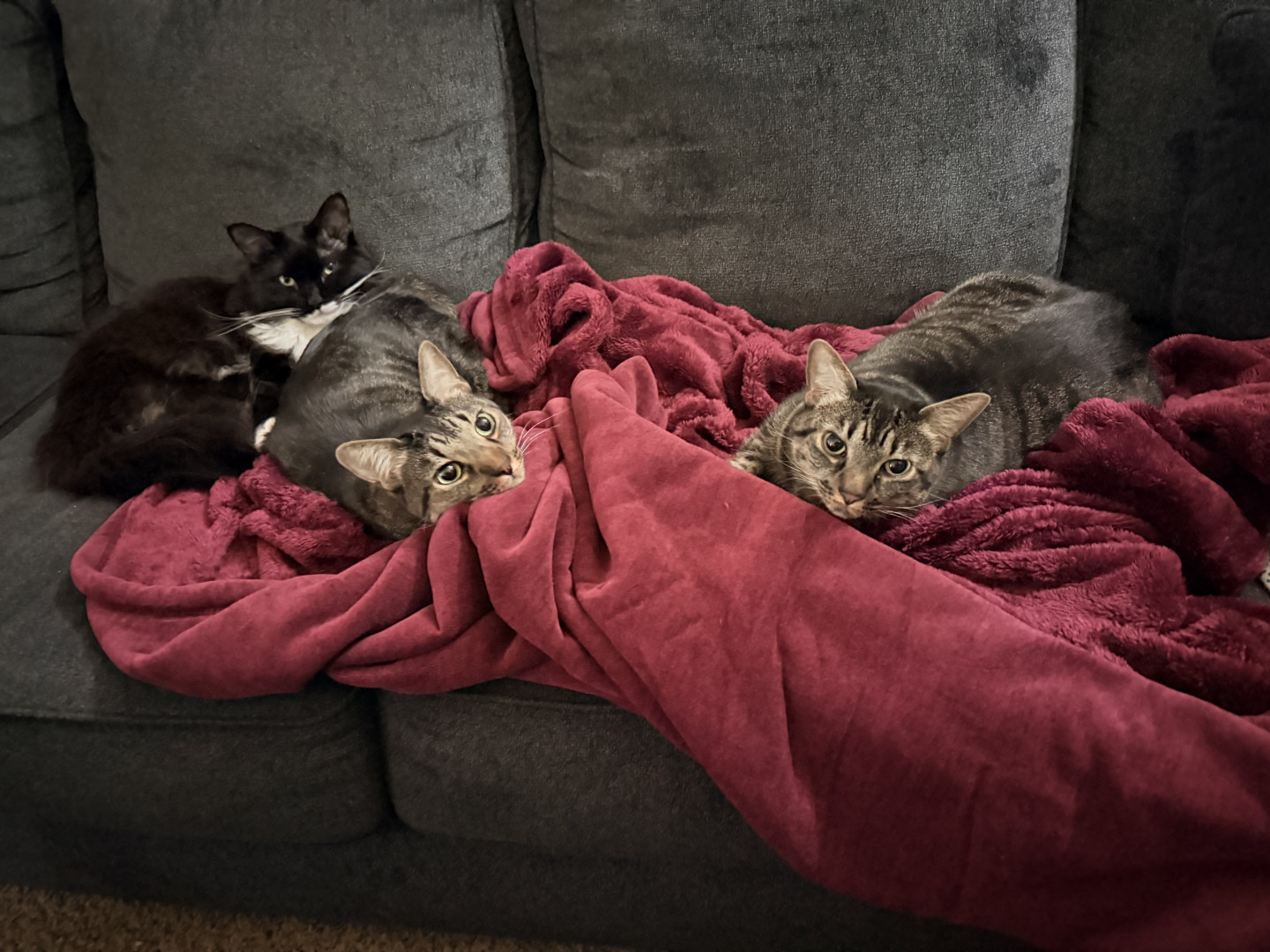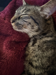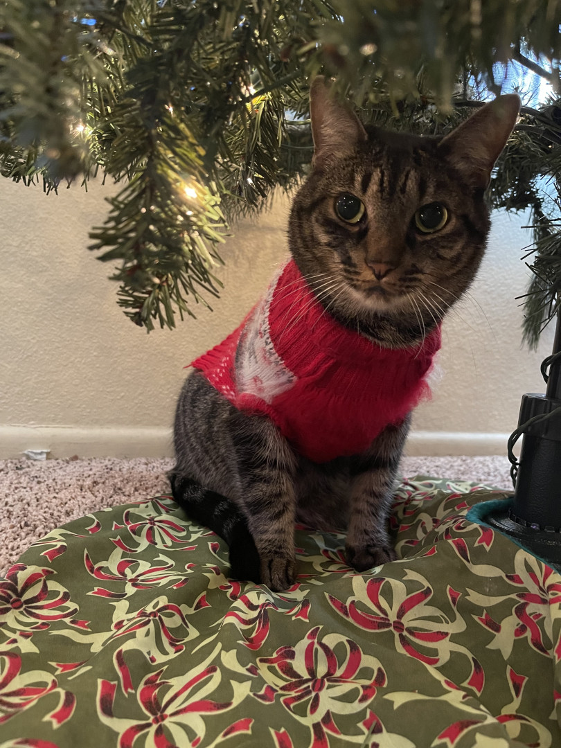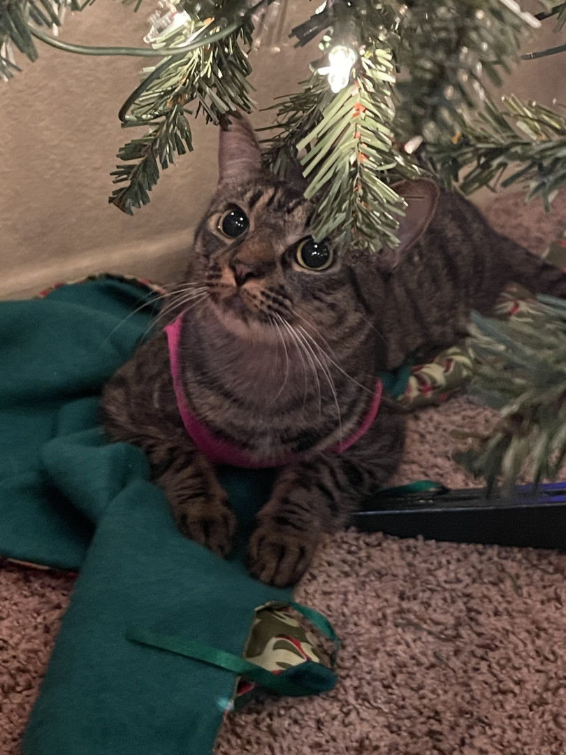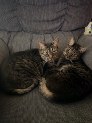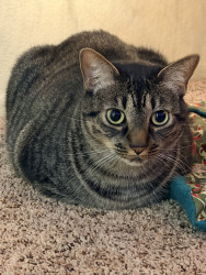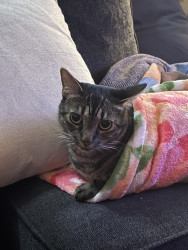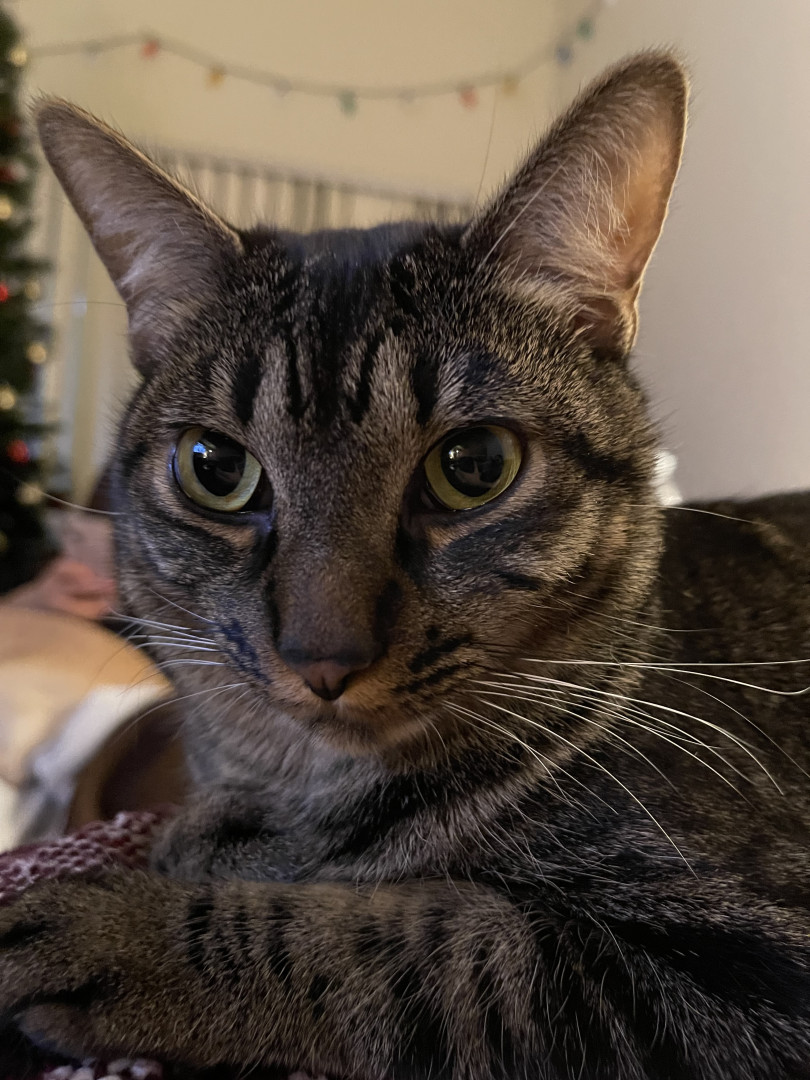 Luna is 4 years old. She is the sweetest cat and doesn’t bite, scratch or hiss… until her twin brother annoys her. We love Luna so much!