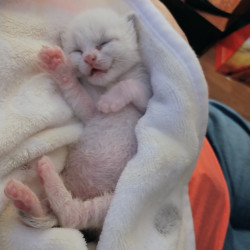 I got Luna & 2 siblings at 3 days old and bottlefed them.She is the only survivor from that litter of 5. My little miracle.