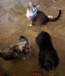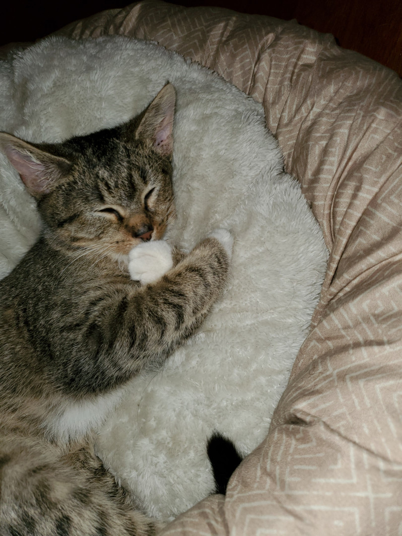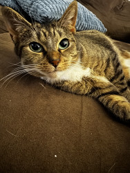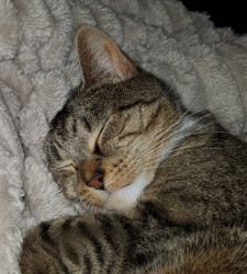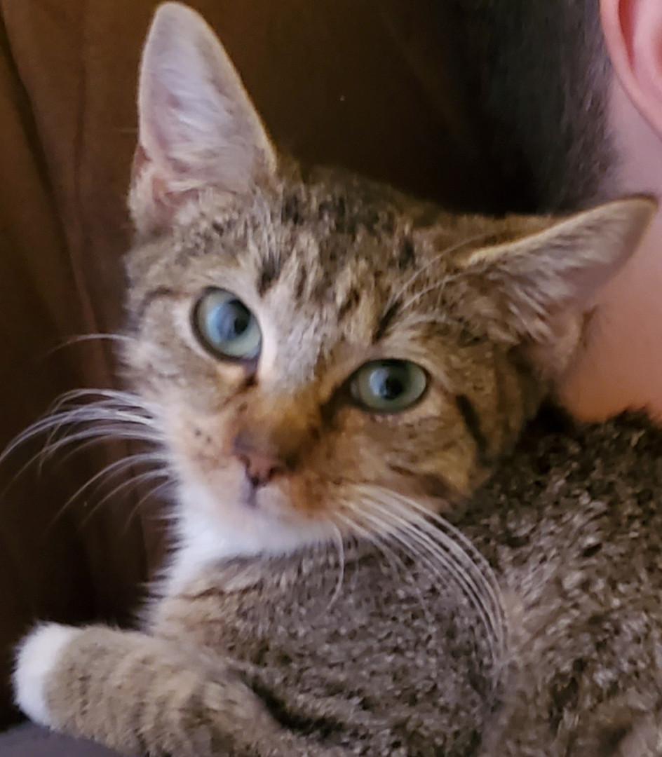 Luna was rescued by me. She has three legs that a working and one that she limps around with. Since her accident she has always been and upbeat cat with lots of personality and love.
