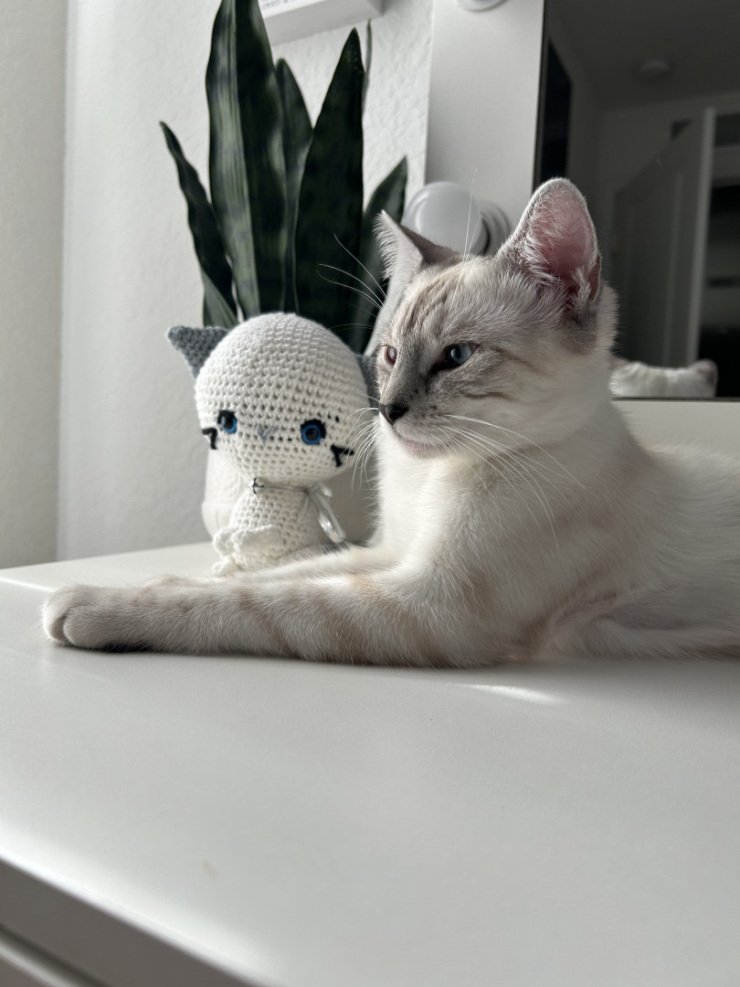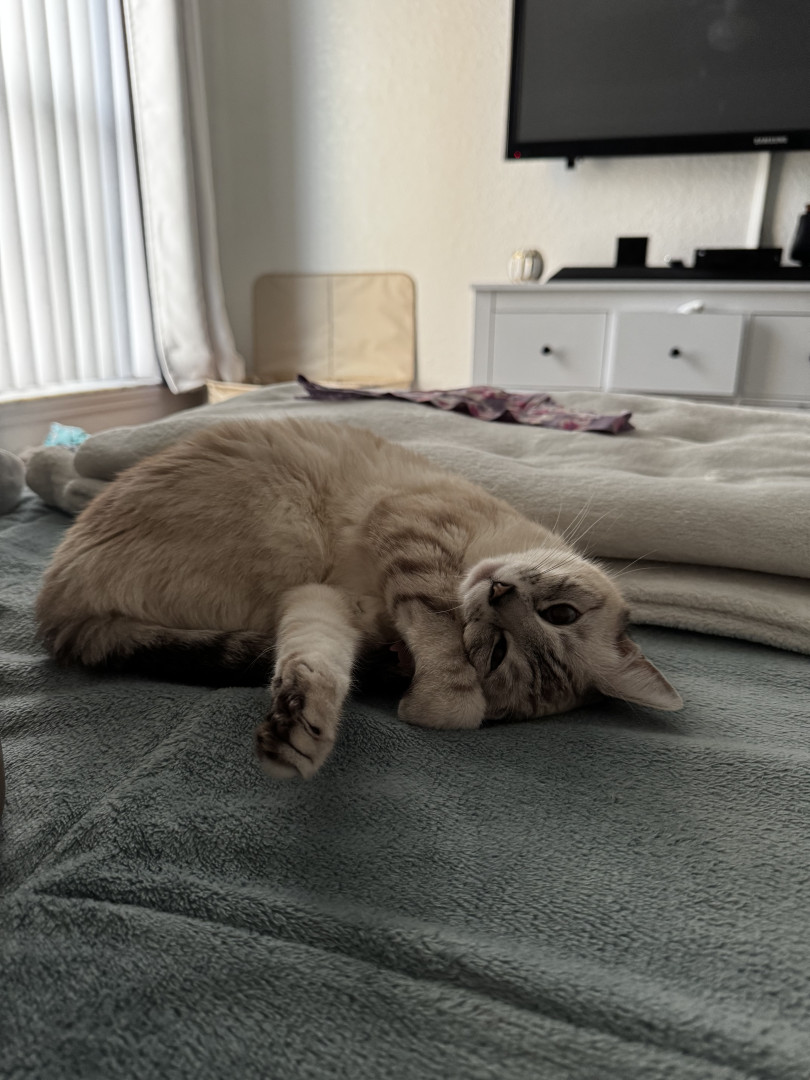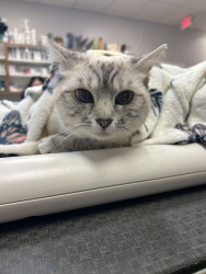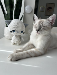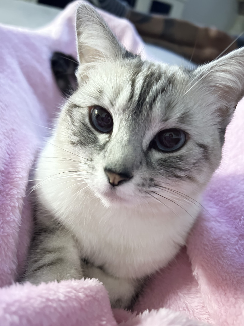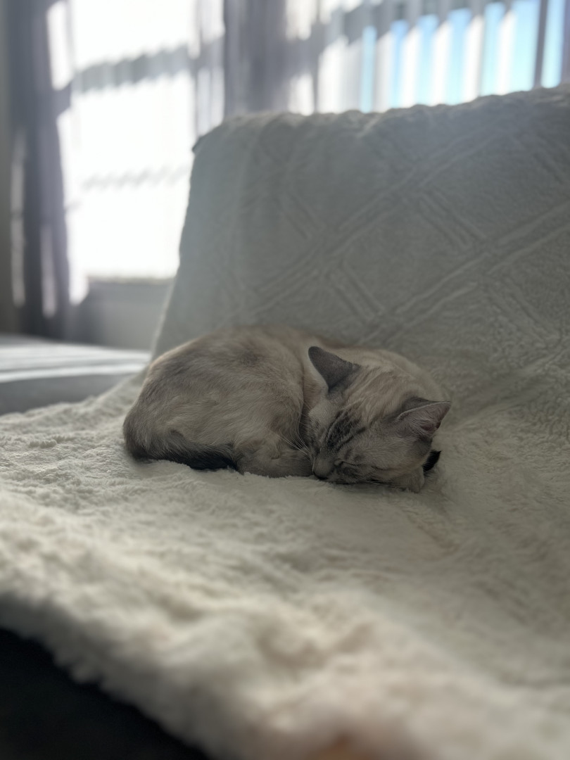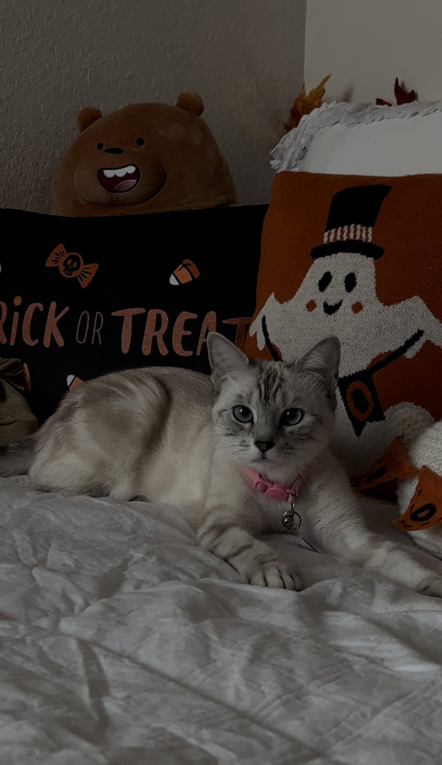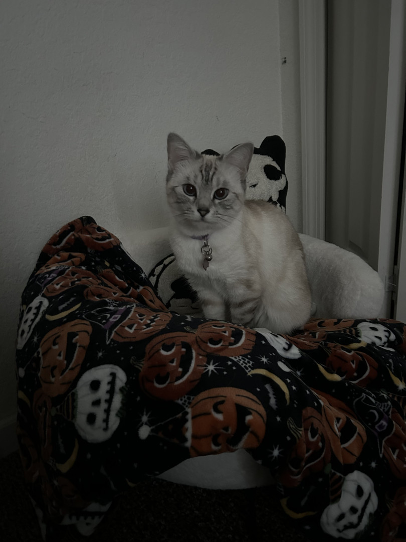 Luna is a sweet, cuddly kitty who loves to sleep and cuddle. She adores spooky season . Cozy naps, gentle snuggles, and all the spooky vibes