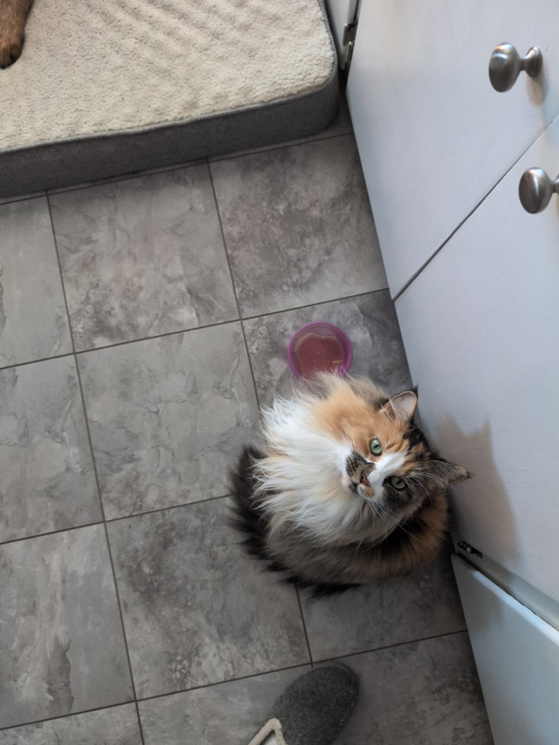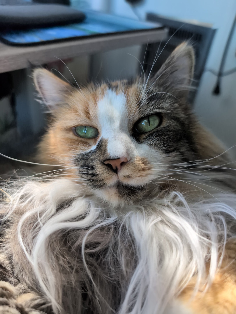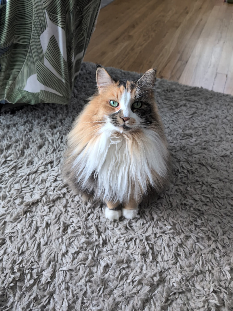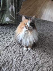 Luna is a 9 year old calico cat that was adopted from the humane society. She is very personable and so cute with her big green eyes!