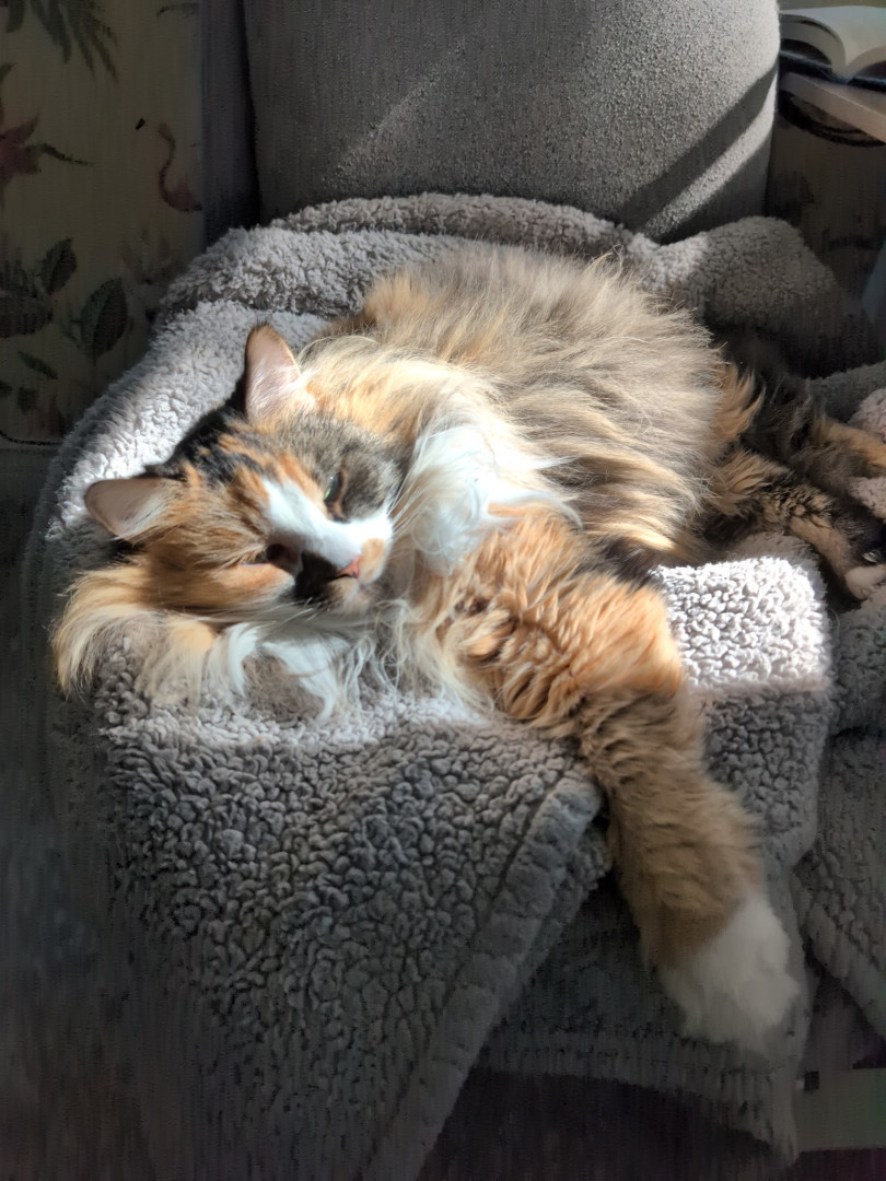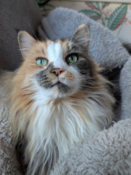 Luna was three years old when we found her while I was volunteering at the humane society. She was already on her third home and kept getting returned because of her health issues. She immediately snuggled in my lap when I opened her cage and I begged my mom to let me get her. We were first on the waitlist and waited a few weeks for her to be healthy enough. She has now been with us for 6 years and is thriving! She is the best cat and is so personable. I love her with all my heart.
