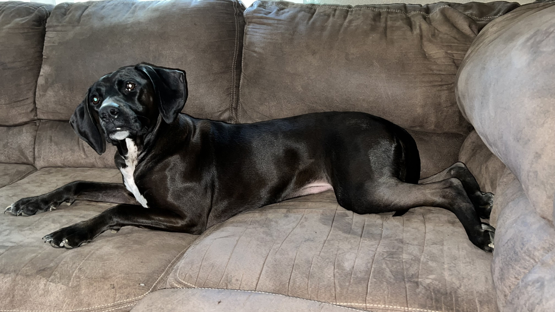 Luna is a coonhound / lab mix. She definitely has the coonhound vocals!