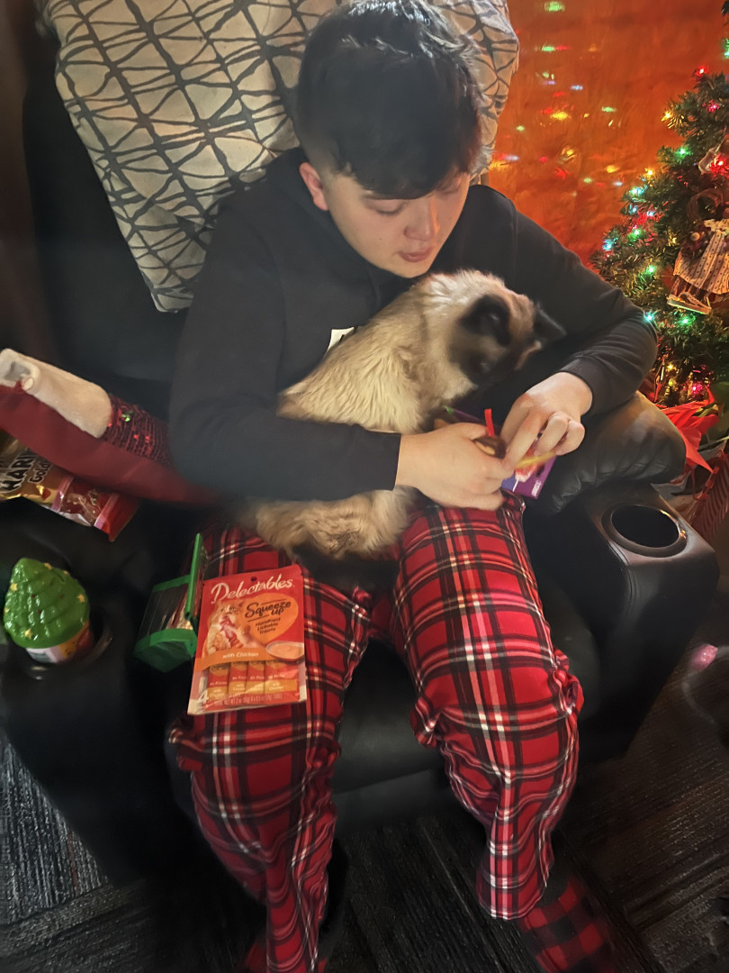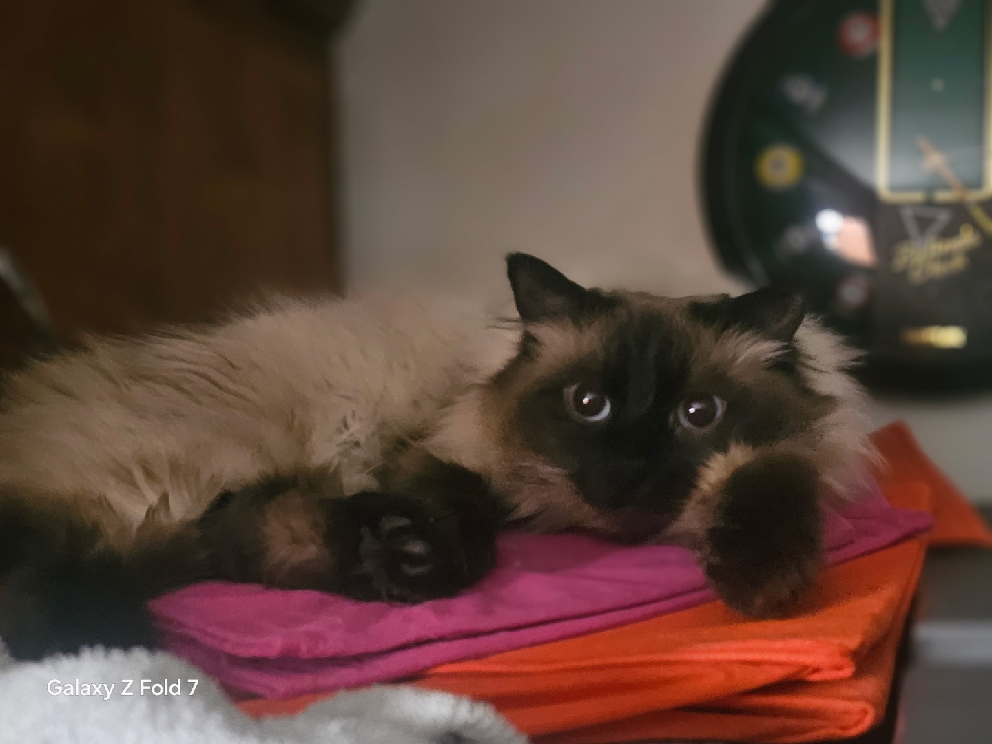 Everyone that meets Lunar absolutely loves him. They always say how beautiful he is and how he has the best temperament. He is very talkative and has three different meows and he (yowls) that’s what we call it lol