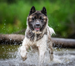 His obsession with water. Akitas aren’t typically water dogs but he won’t stay out of the water