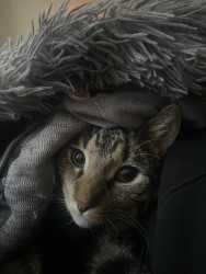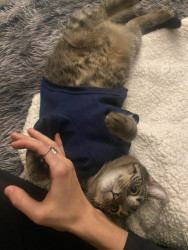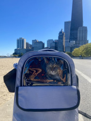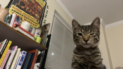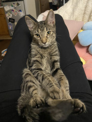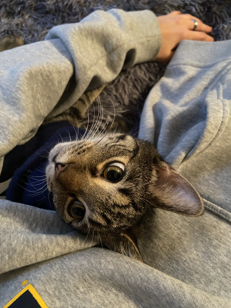 He’s incredibly smart! His ways of communicating with me are super specific and hilariousss. For example, when he wants to let me know that he doesn’t like a treat or wants a fresh can of wet food, he’ll turn around and kick behind him as if he’s covering up something in his litter box!