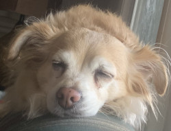 Lylah May is very sweet little dog who is a great companion. She’s loves to sleep at my feet and in my bed. Lylah May is a good watchdog!