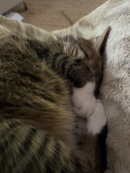 Mabel tolerates cat treats like dehydrated chicken, but her forbidden love is dairy-filled people treats like ice cream. Look away for one second and you’ll have a tiny paw scooping out of your bowl.