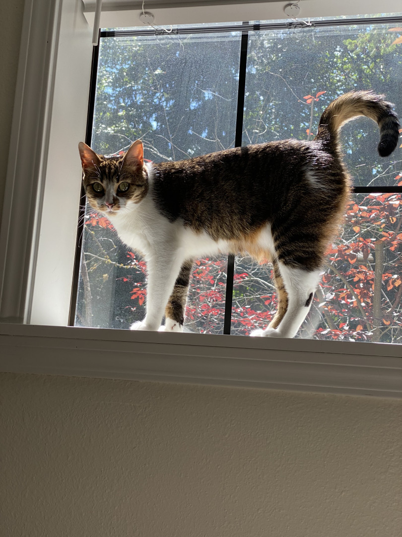 Tele-”paw”-thy. Mabel has an uncanny ability to predict what’s coming next. Her favorite game at 3 a.m. is “push and run”, which includes pushing something off our shelves, waiting until she thinks I will get out of bed to catch her (and knowing exactly when - that’s the key), and running under the bed out of sight. She has our patterns and movements down better than we do.