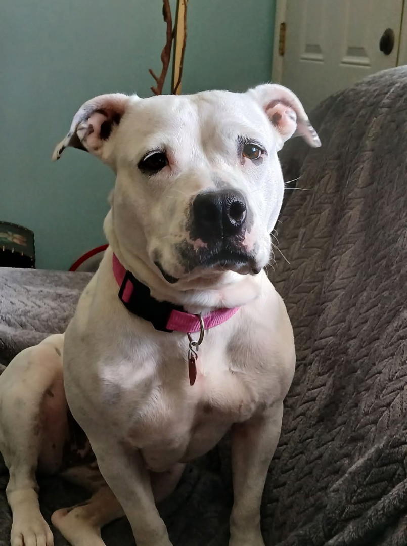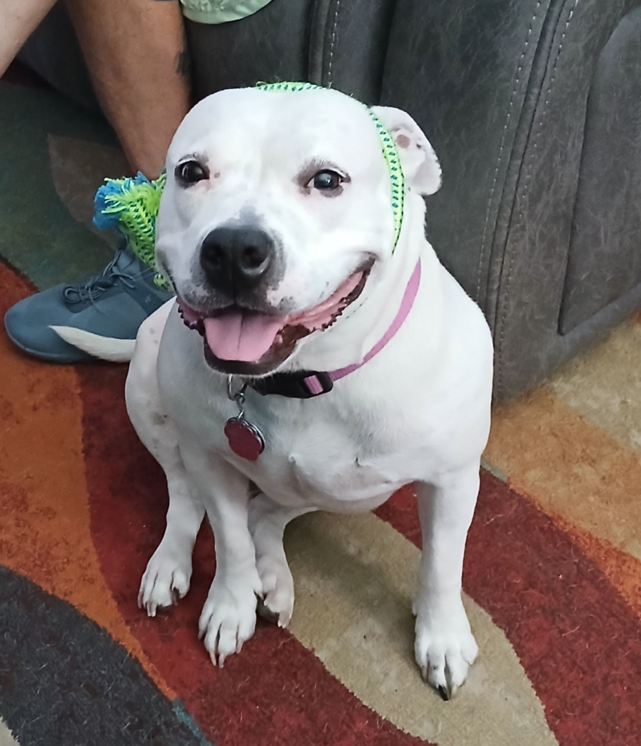Adopted, beautiful, gentle, loving, ballchasing playful,loyal,smart, AmStaff girl.