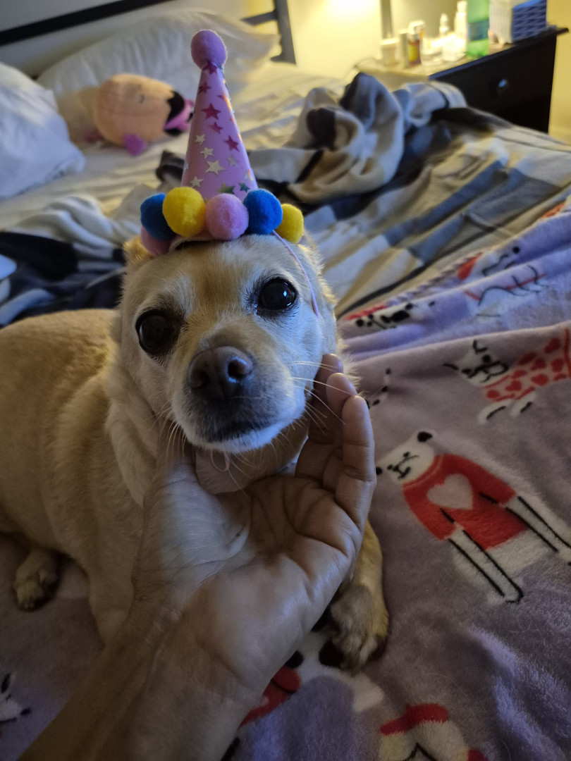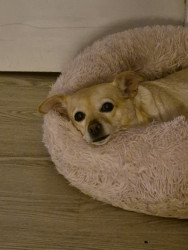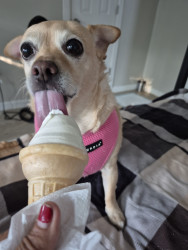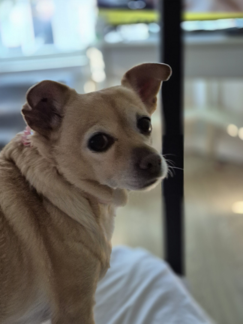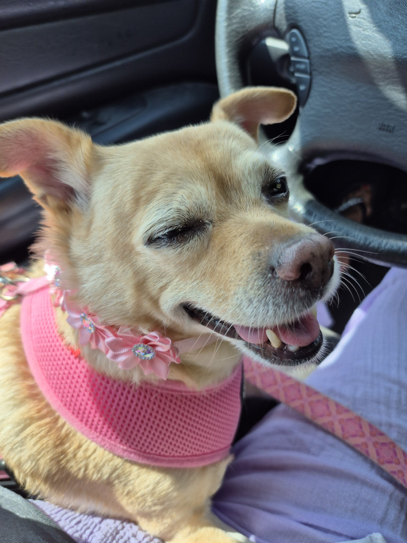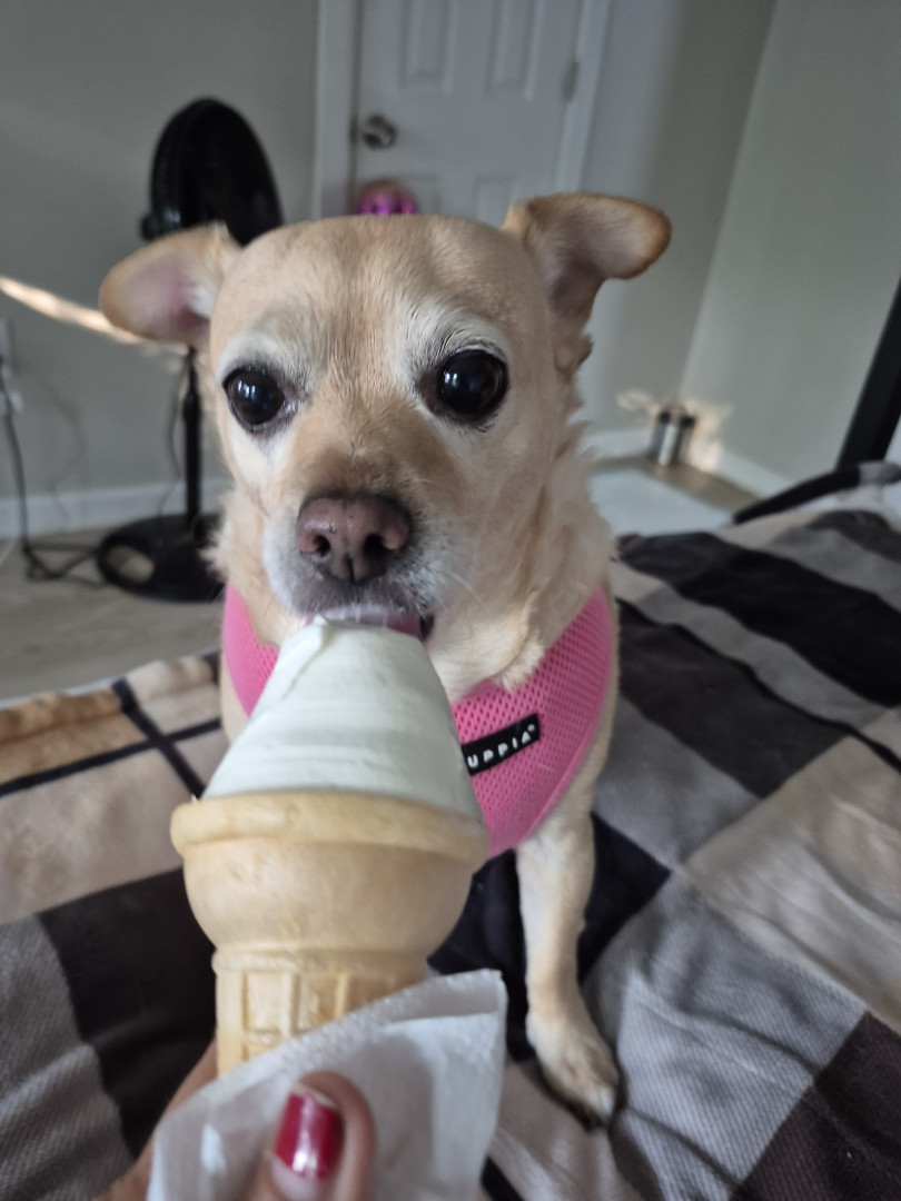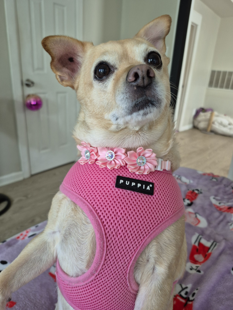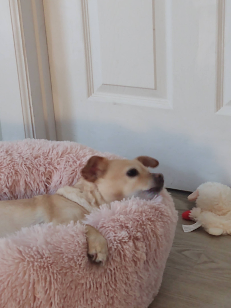 Mabel is a Chiuwawa terrier mix sweet, kisses me always found on the street, no chip hernia, she rescued me,12 yrs waiting kidney, she save