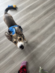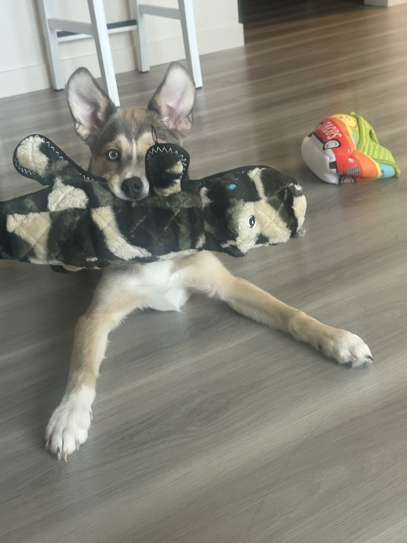 Her favorite toy is her fox and anything that squeaks! Her favorite treats are her peppermint cookies!