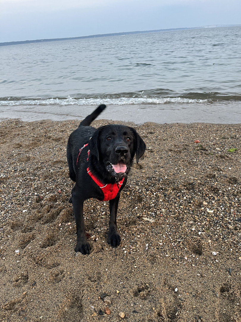 Smart, sweet, silly. Loves to play hide and seek. Ball and water obsessed. Dramatic. Snuggle bug.