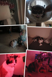 She aculikes a burlap rug to scratch on and likes a laser toy.