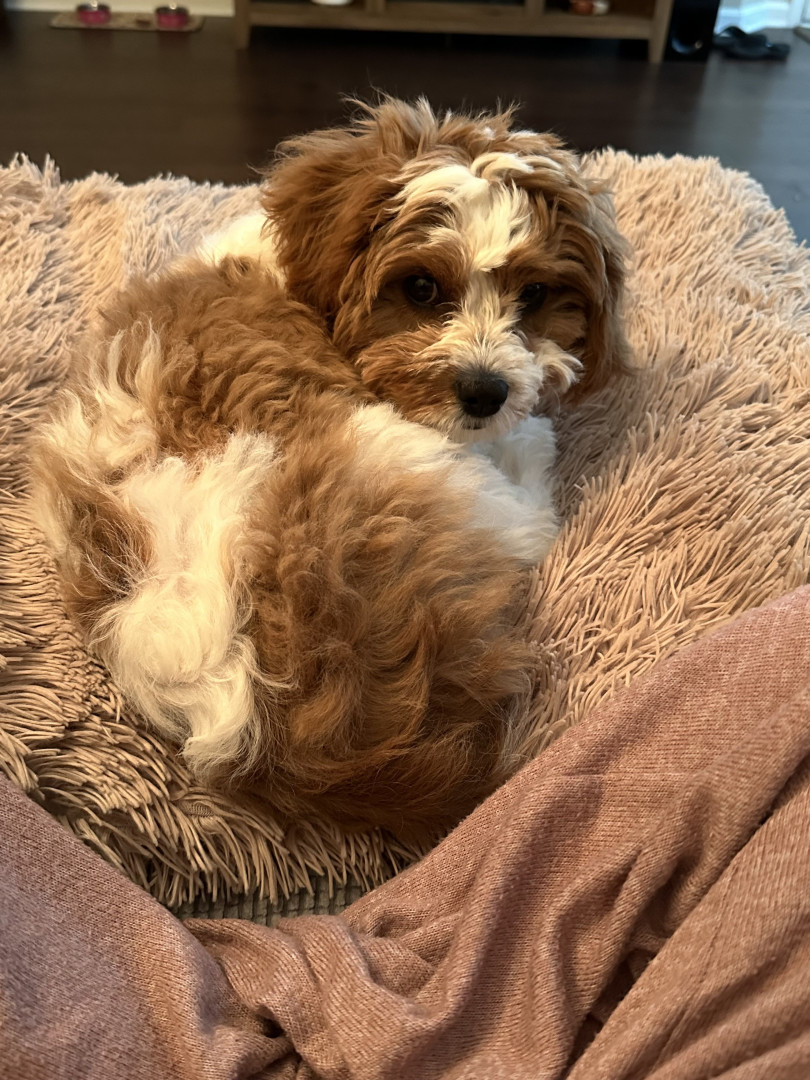 Macy is a sweet and spunky little girl. Our lives changed the day we brought her home. She is a cavapoo with an attitude of a big dog!