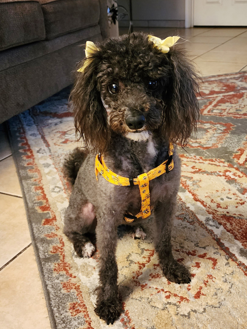 My shadow my friendly extremely hyper girl Only goes for walks in pet smart she hates to go on walks. She thinks she is a cat also.