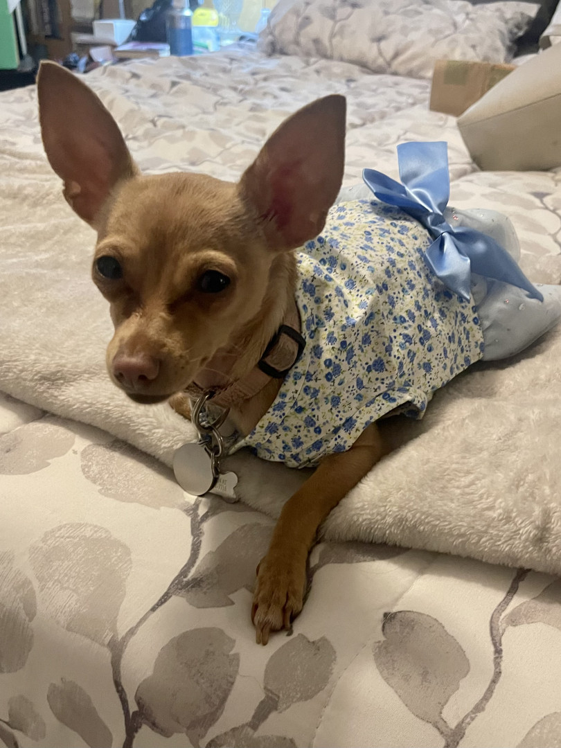 Macy is a very smart and adorable little 4lb full breed chihuahua. She loves to cuddle in my lap and snuggle in her favorite blanket.