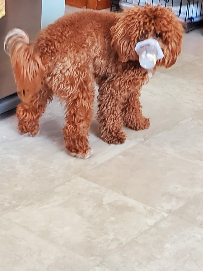 Favorite toy Petsta dog puzzle toy, treat dispensary. Petite dog one treats. Also like her stuffed toy dog,we call it baby. We tell her to go get baby, she will bring it to you. So absolutely loves her pup cups.