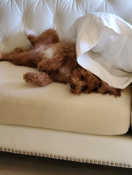 Macy is extremely smart. She can work her dog treat puzzle, that is difficult, but is able to work it every time. When I come home she will bring me my house shoes, because when I put them on, she knows I'm staying home. When she's finished eating she will carry her dog plate to you for a treat.