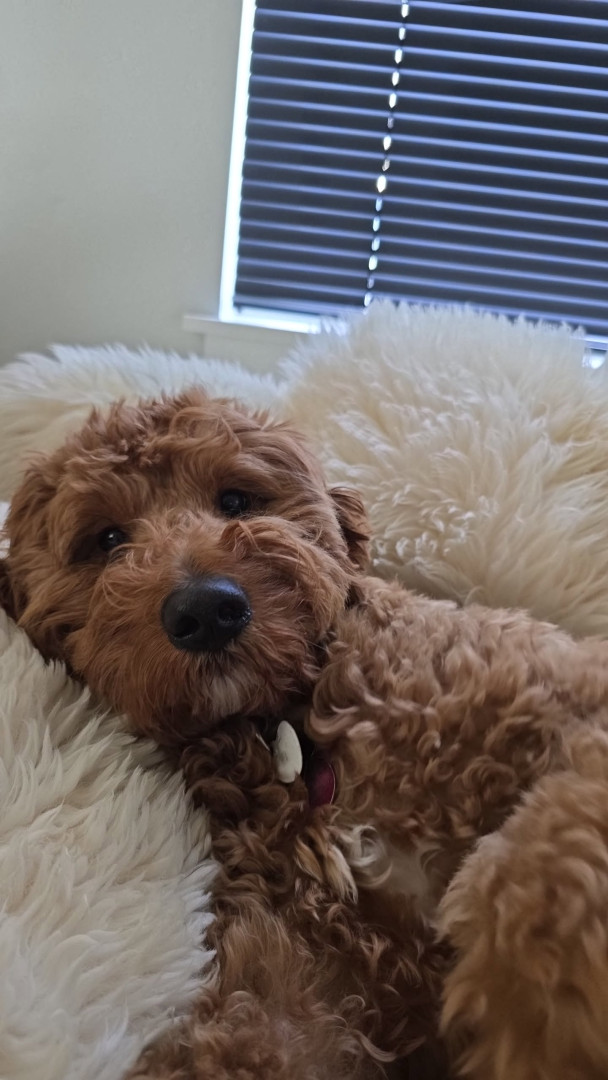 Madden is the sweetest boy. He loves to snuggle up, loves to play fetch and loves car rides for his favorite pup cup.