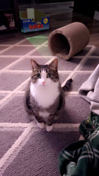 She loves to playing fetch with her pink mouse. She also is very vocal and sociable. Also makes friends with two outdoor cats that come by