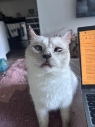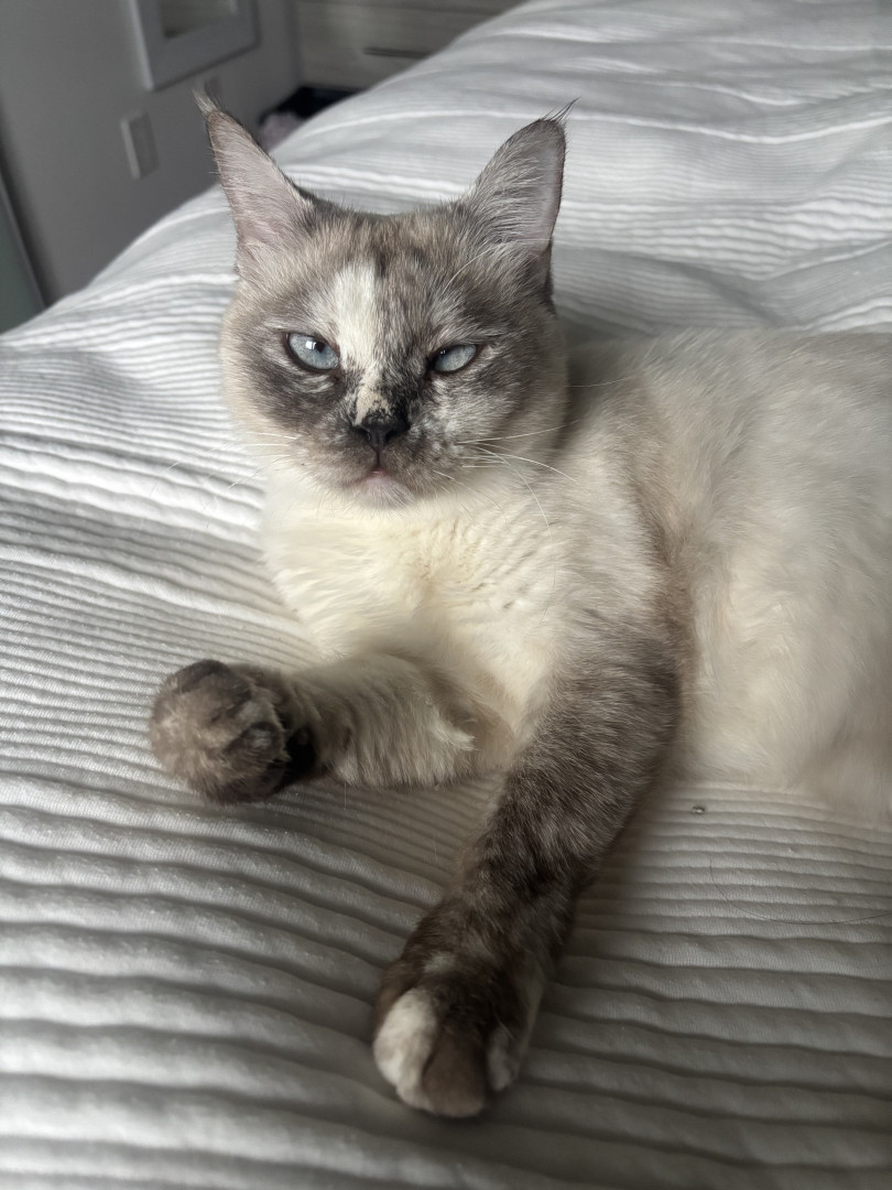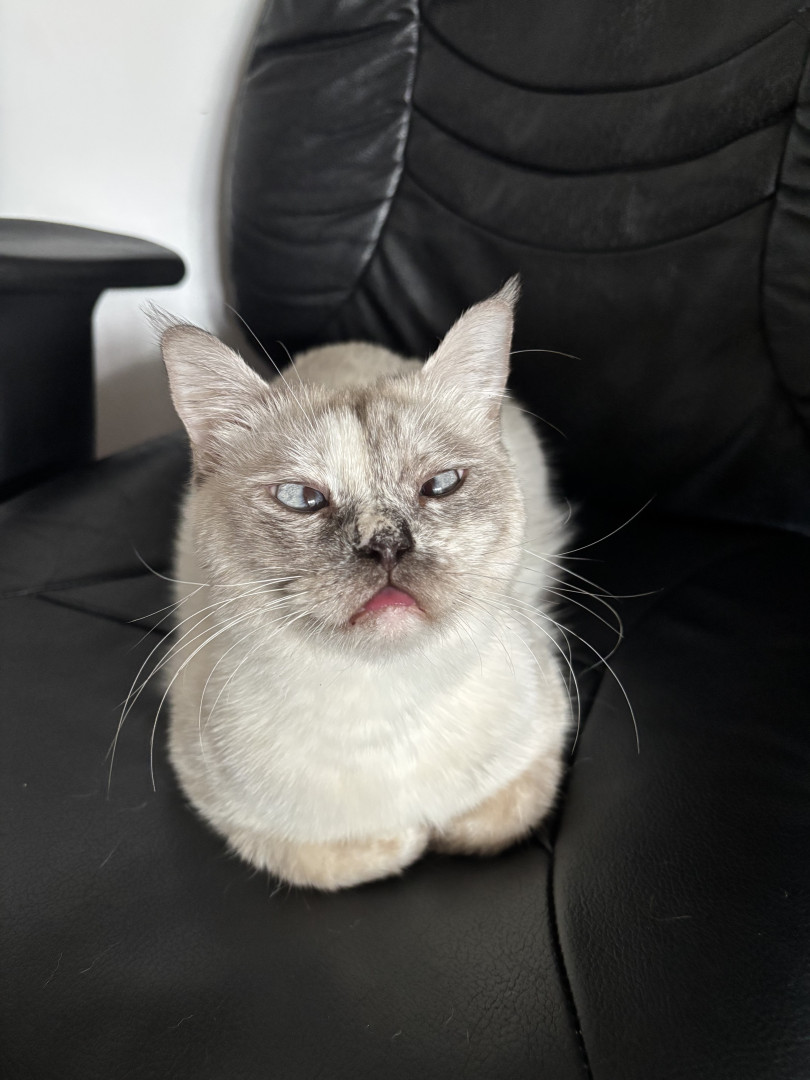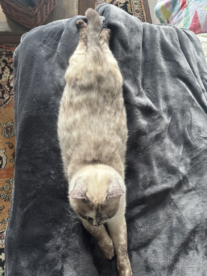 Maeve was picked up off the streets of Egypt, covered in fleas and full of tape worm. She has come a long way and is now the funniest, most loving companion to her mama.
