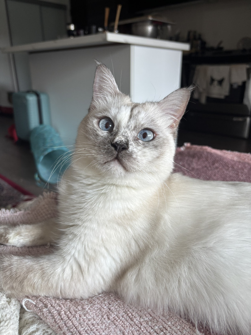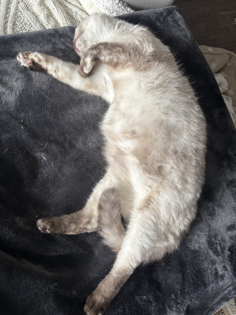 Maeve goes crazy for Da Bird- she will carry the feather in her mouth and drag it all around the house. It’s always a surprise where I’ll find it- in the bathroom, in between my shoes, tangled around her food bowl… Maeve’s favourite treat is Balderson old cheddar, which she screams impatiently for every single morning while mom eats her breakfast.