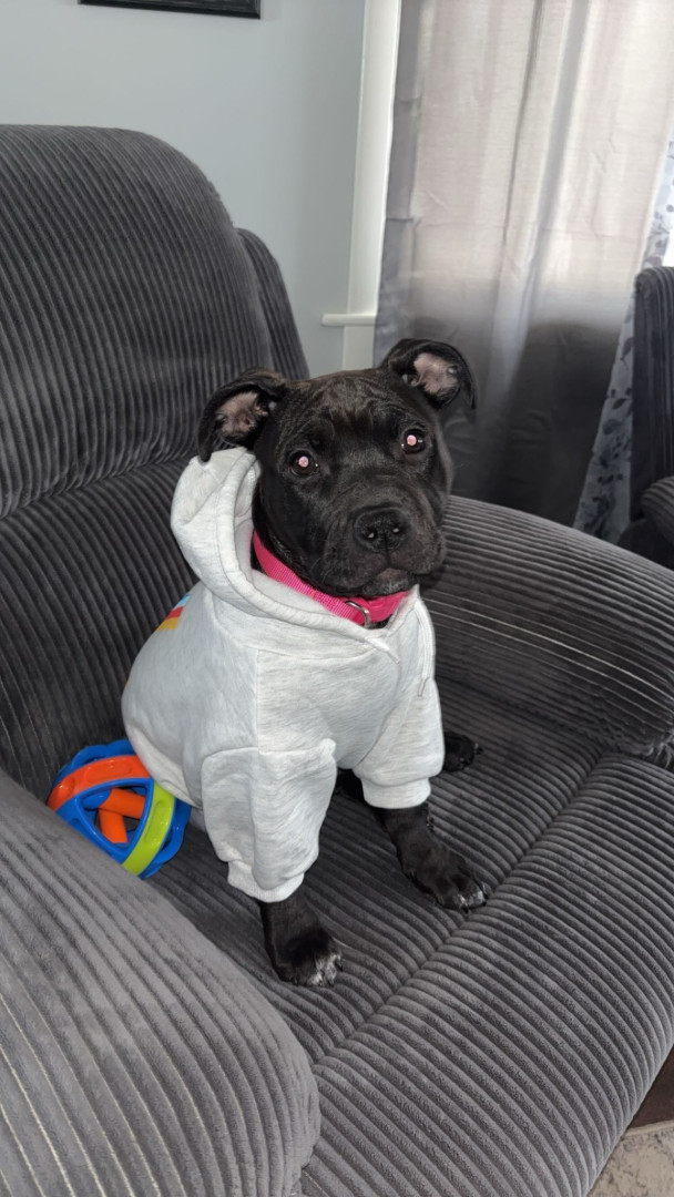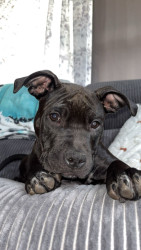 Maggie is a spunky, playful, energetic 5 month old American bully pit. She loves to cuddle and loves attention from anyone around her.