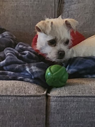 I adopted Maggie. She was found dumped in a crate on the side of a park. She is such a joy. She loves her ball.