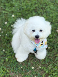 Maggie Lee is a rambunctious one year old Bichon Frisé who loves attention and play time. Her sweet face melts every single heart.