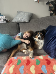 I mean how could you not choose this photogenic pup. But if I can put into a few words on why….Maggie is your loudly obnoxious pup that makes herself known. She never steps down from a good whine until she gets her way. But don’t let her antics fool you…. She is an absolute LOVER. I’ve never watched a more gentle dog when it comes to her fellow pup friends. Although she is going through some learning curves when it comes to human friends she is learning quite beautifully that people are A-Okay.