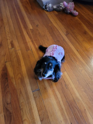 Maggiemae is our furbaby, always happy and ready to play. She enjoys daily walks & car rides. Wears coats, boots, weather conditions in NYS