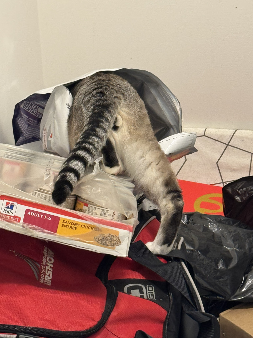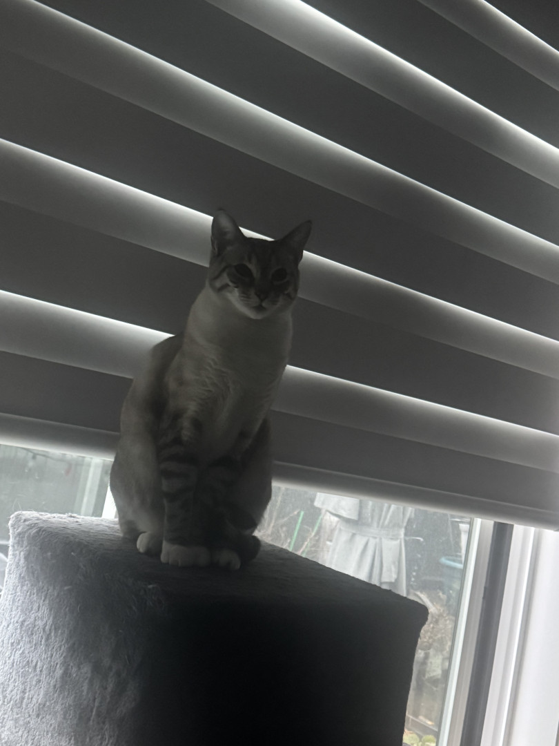 Calm cool and collected until weather changes then it’s speedy Gonzales. He’s very curious and loves exploring everywhere he’s not allowed.