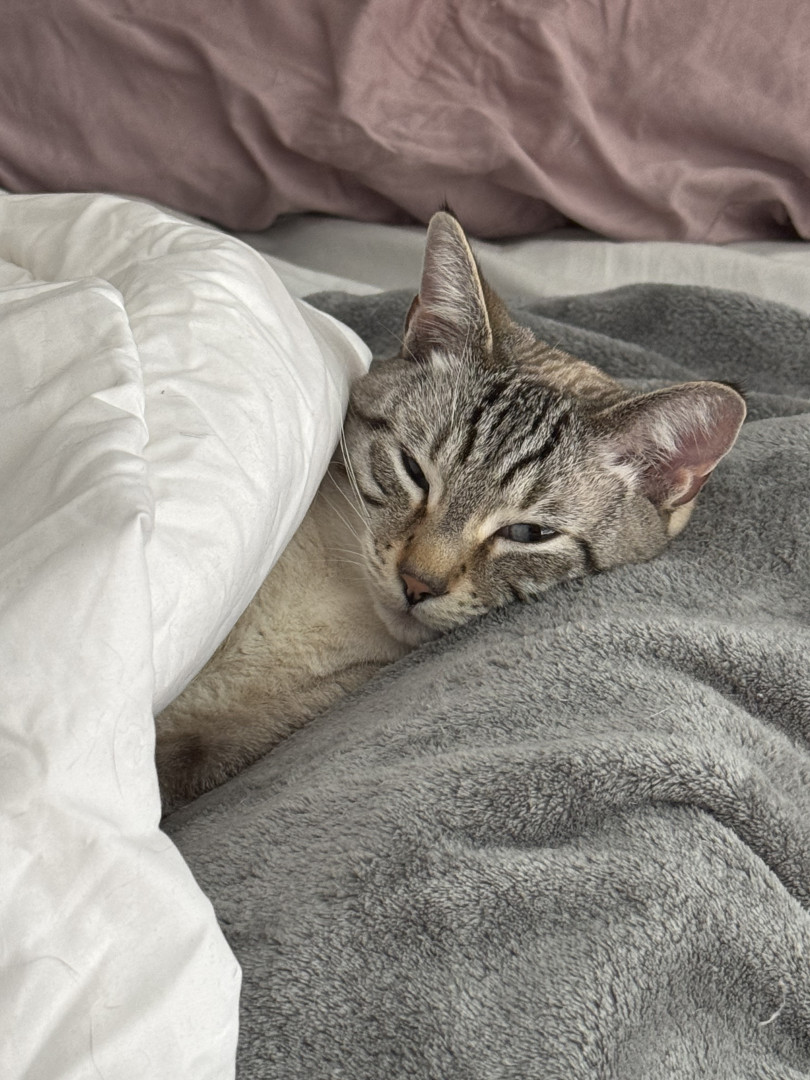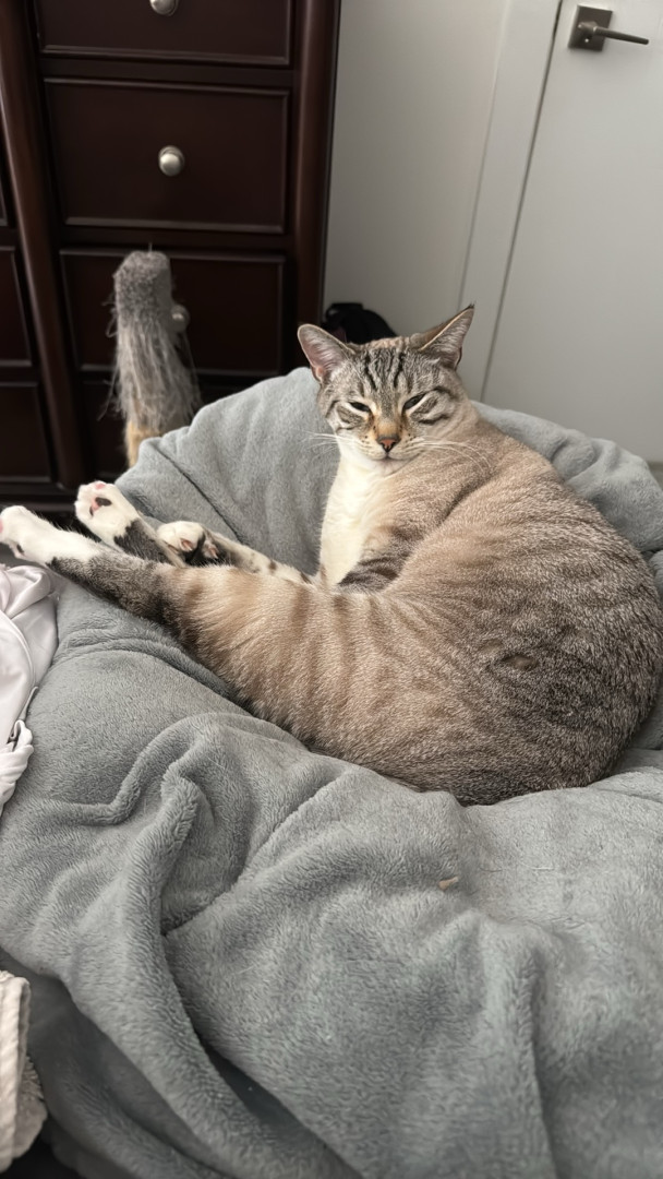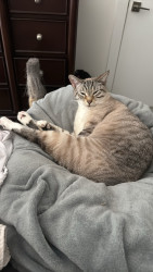Receive Text UpdatesAnything he can find He loves soft blankets and pillows to lay on Chicken and liver Cattit lickable treat