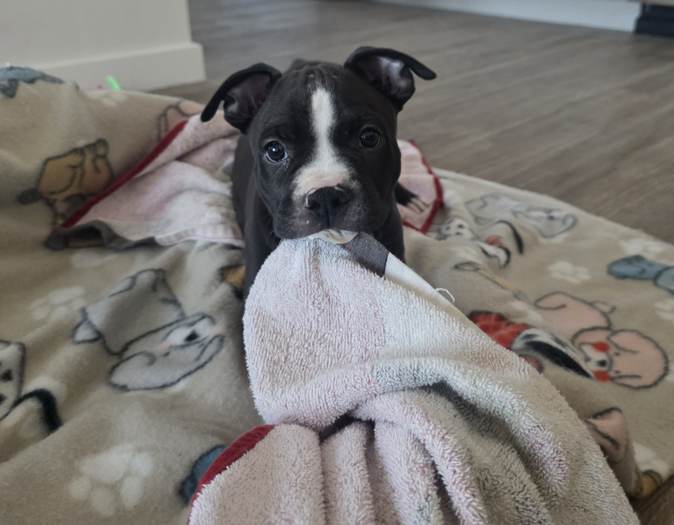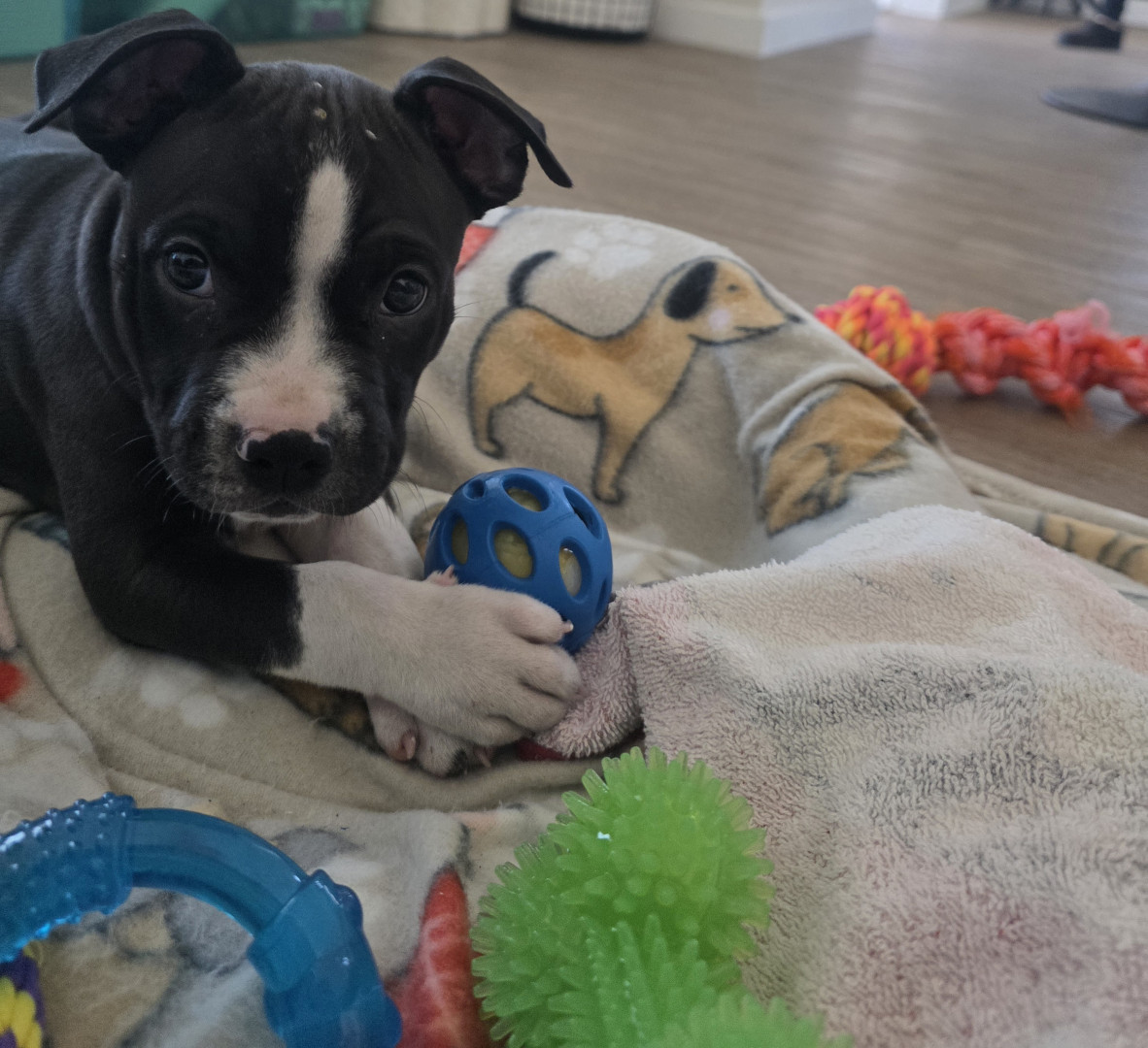 Magnus is a pitbull puppy. He is mischievous, loving and playful. He is a good boy!