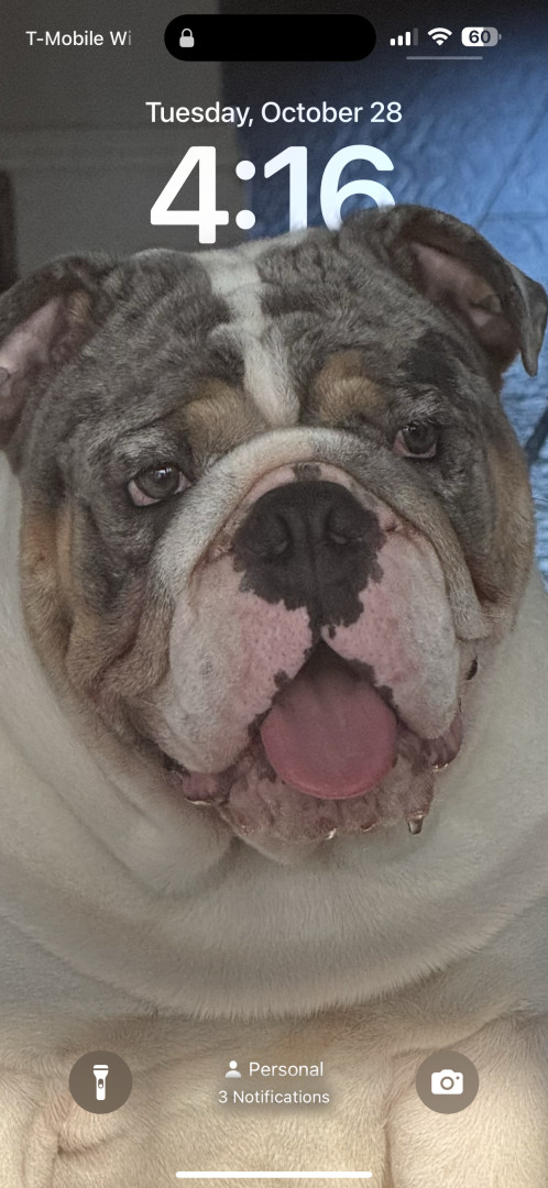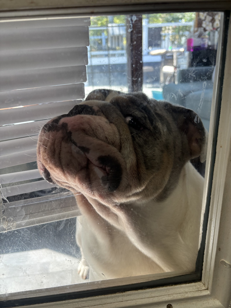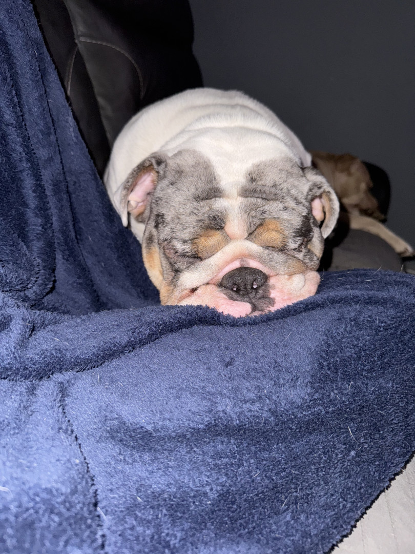 Milo is one crazy English bulldog he likes to play a lot he’s very hyper has a lot of energy doesn’t let anyone sleep,