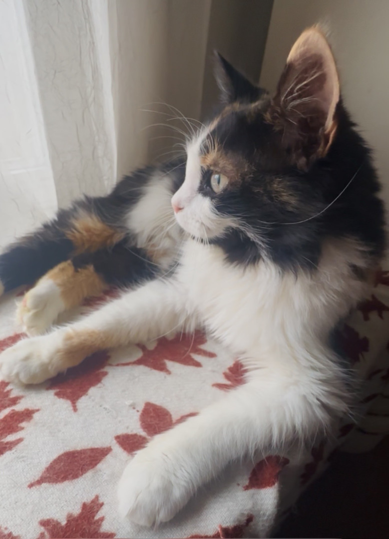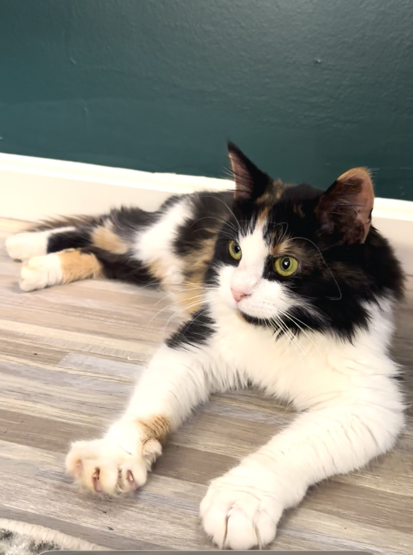 Maisey is a 1 year old rescue domestic long hair who we believe is part Maine Coon. She is super affectionate and loves to play.
