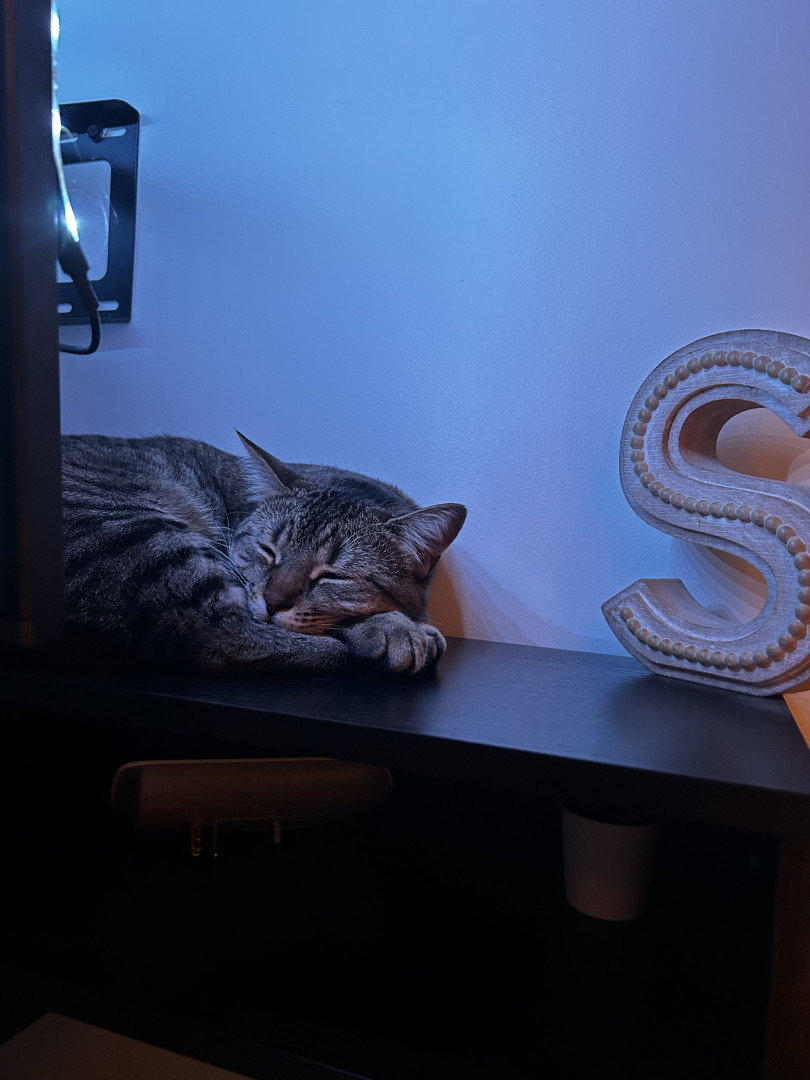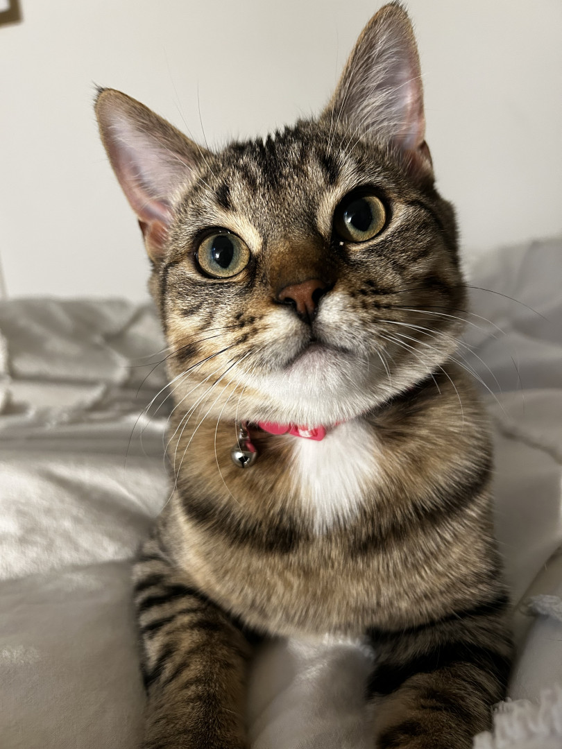 Maisie’s unique quality is her boundless curiosity and playful spirit — she turns everyday moments into fun, whether she’s sprinting through the house, leaping off furniture, or “helping” make the bed. Her sweet, loving nature mixed with her energetic personality makes her impossible not to smile at.