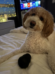 Learn MoreMaisie’s favourite toy is her life size lamb chop stuffy. She loves to snuggle with it and then thrash it around right after! It’s so cute because it looks just like her and you can’t tell where she ends and lamb chop begins! Her go to treat is her Kong stuffed with her Kong cookies or Ziggies sticks. She loves chewing to get the treats inside and throwing the Kong in the air!