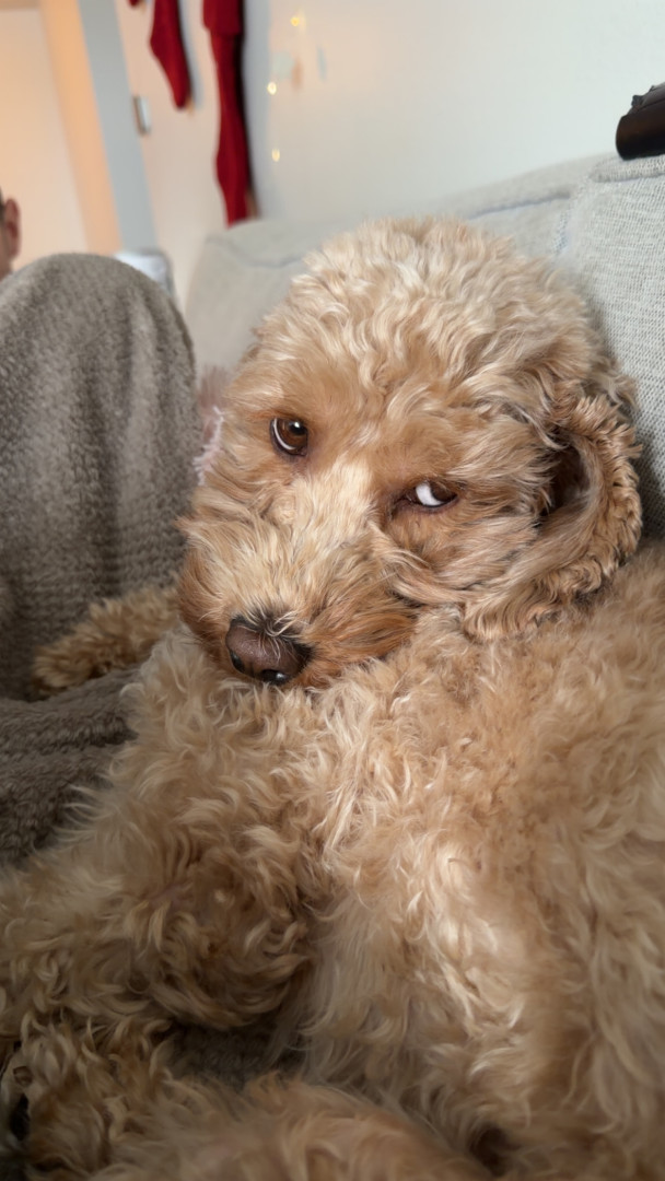 Sweet Maisie’s has a health rollercoaster, but stays chippy-happy. Velcro dog, bone chewer, total social butterfly!