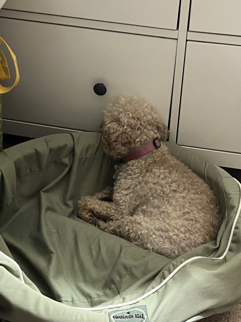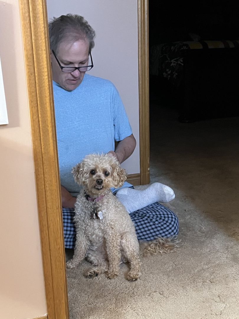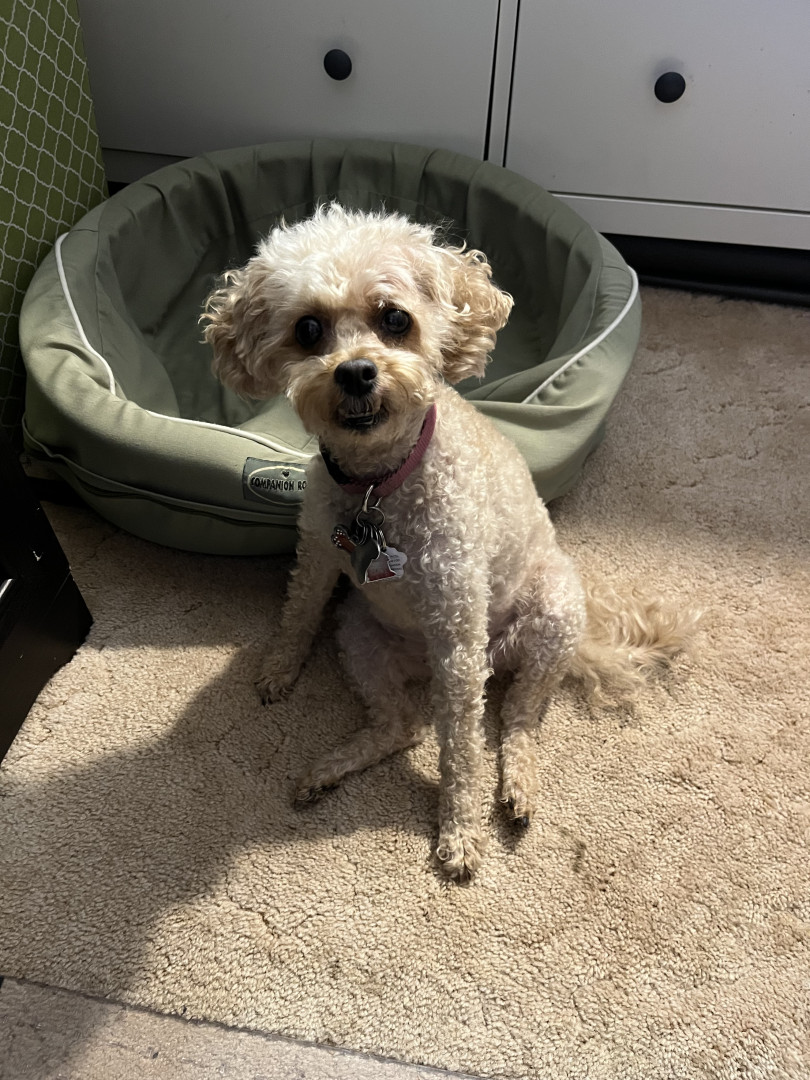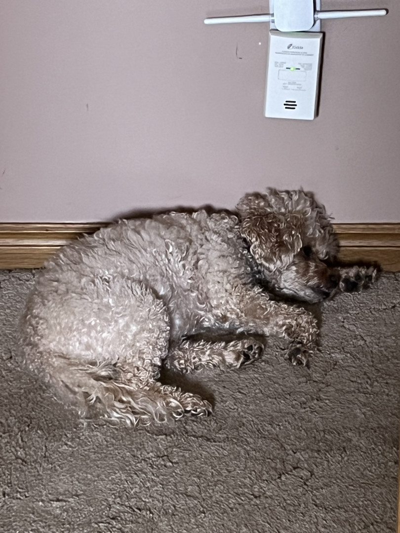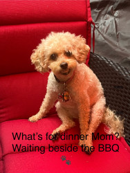 Her ability to hear a leaf drop in another province and then alert the household. LOL As she is a poodle she also nudges you with her nose or taps you with her paws to tell you what she wants. When I was recovering from major back surgery a few years ago and using a walker, if I stopped walking and she thought I needed to keep going, she would nudge me on my leg from behind to tell me to keep going.