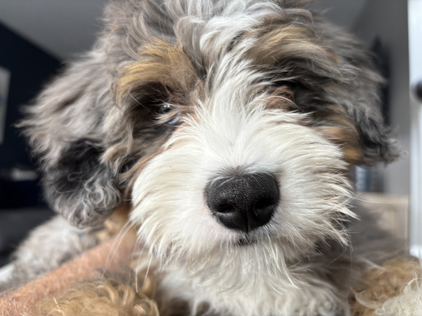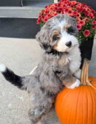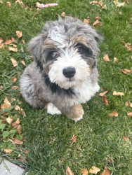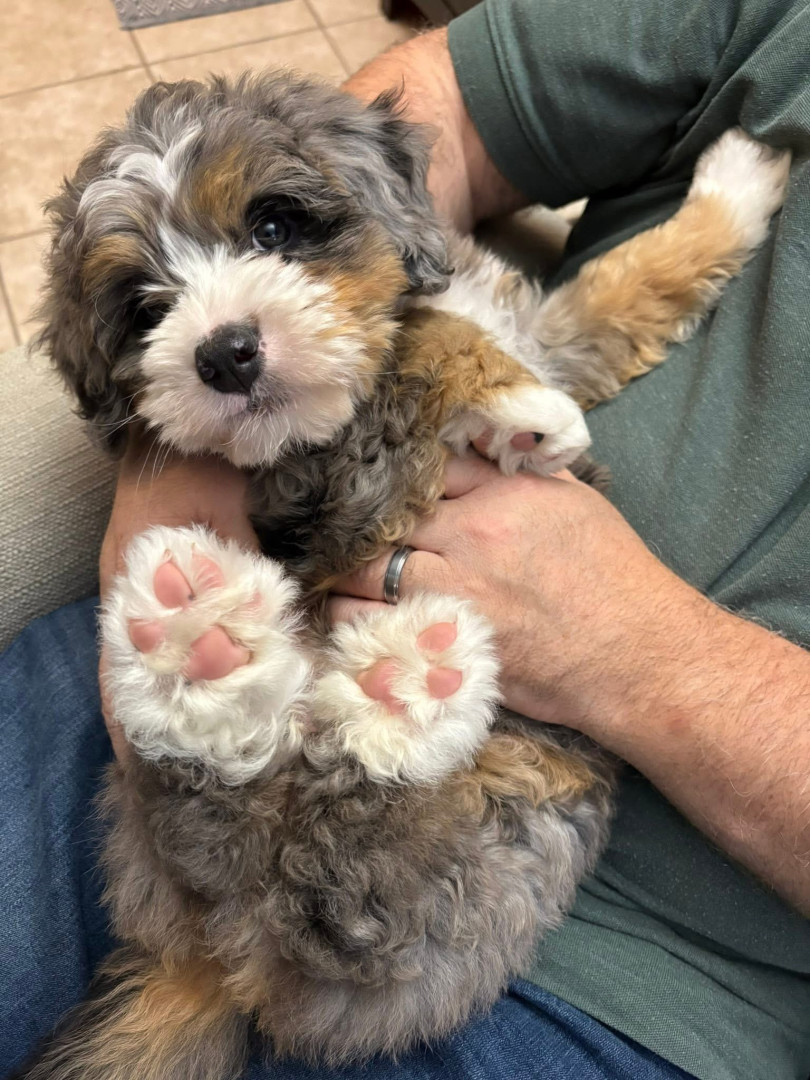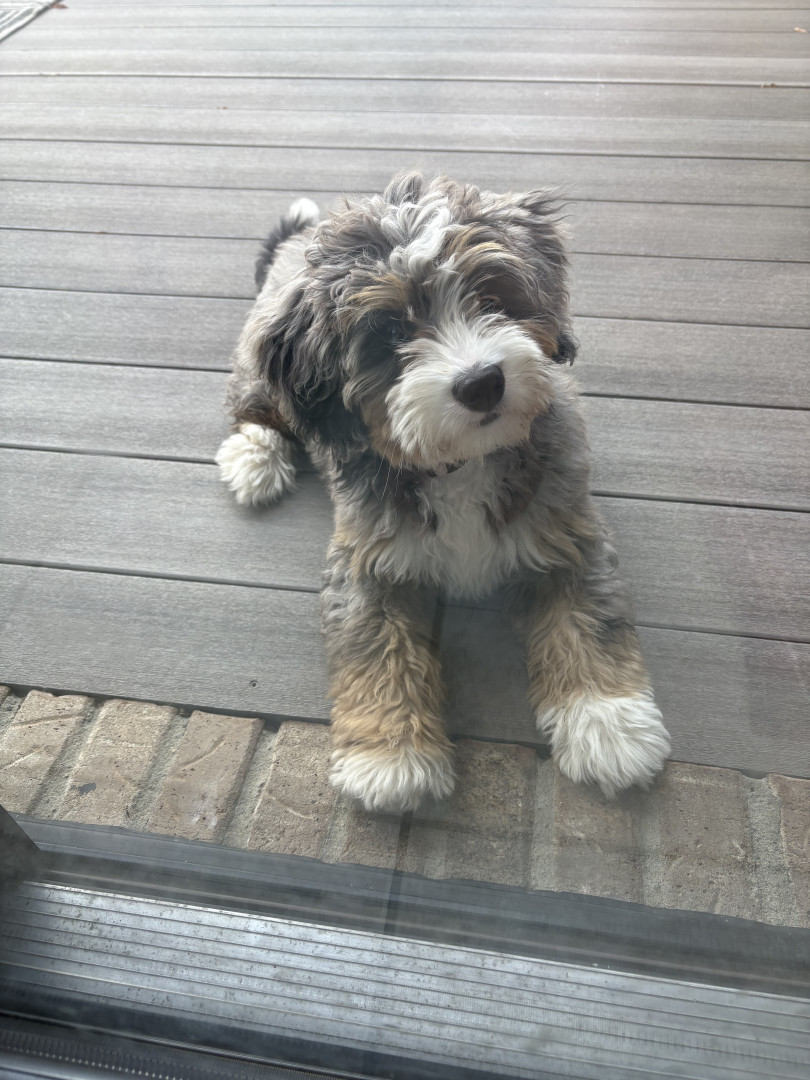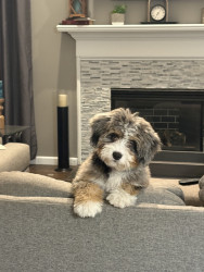 My pet is a beautiful F1 mini Bernedoodle. She is 50% Bernese Mountain and 50% poodle. She has a great personality and is a fluffy goofball.