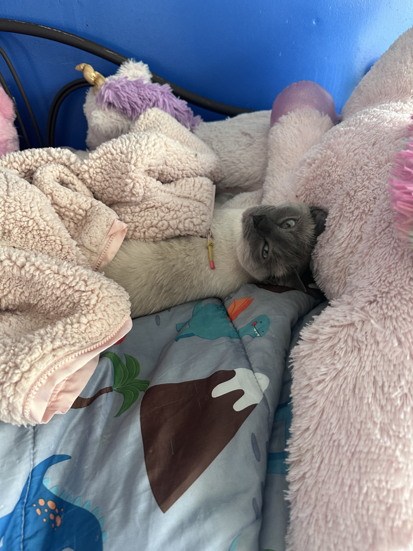 He is cute, funny, personable, and very intuitive with me. He’s also very vocal and will let you know if he’s upset…or happy…or bored…or looking for you or another one of the cats (walks through the house yowling)