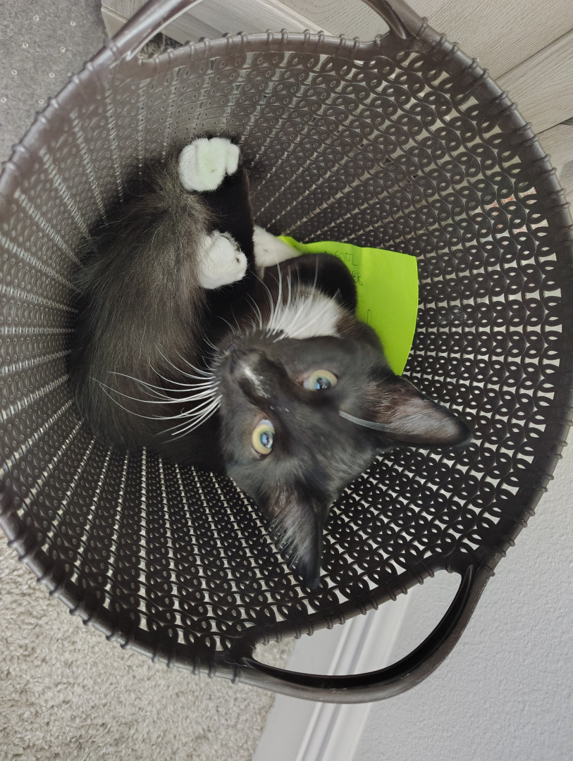 His absolute favorite toy is the corkscrew. Close runner up is the pipe cleaner. Your socks, hair items, phone wires, and water.