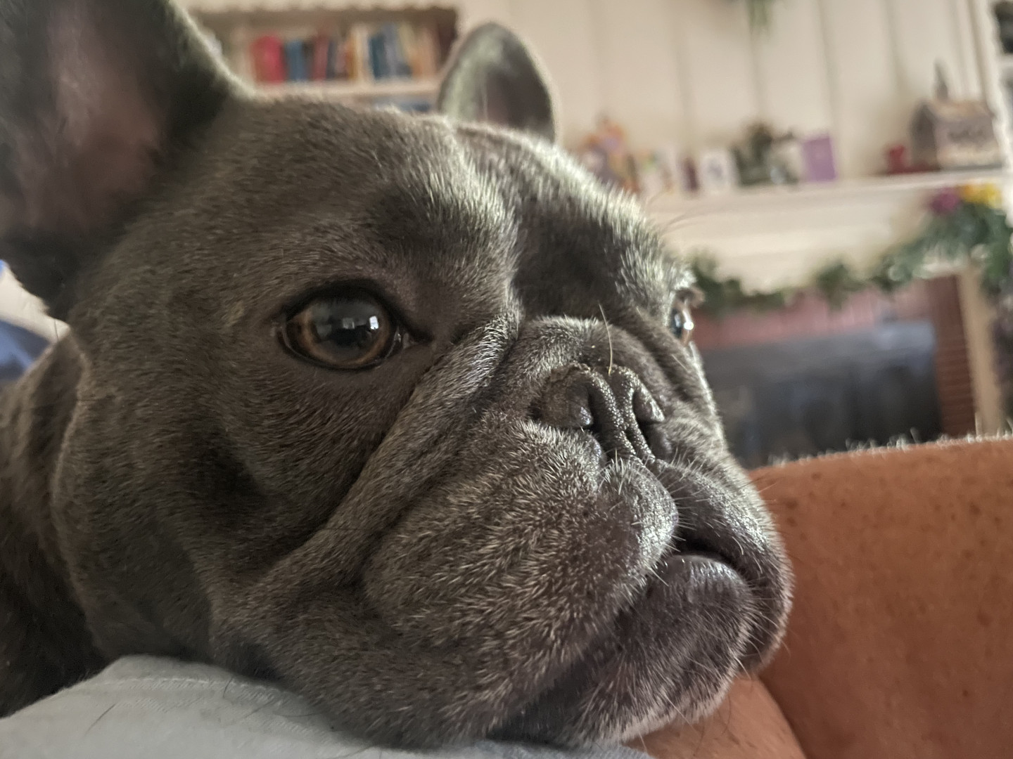 Maleficent “Millie” is a snuggle bug, goofy, diva of a dog. She loves chasing her squeaky toy, cuddling with her cat brother, & car trips.