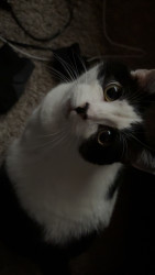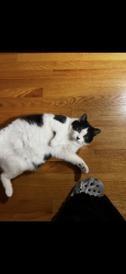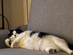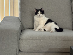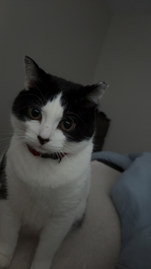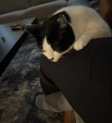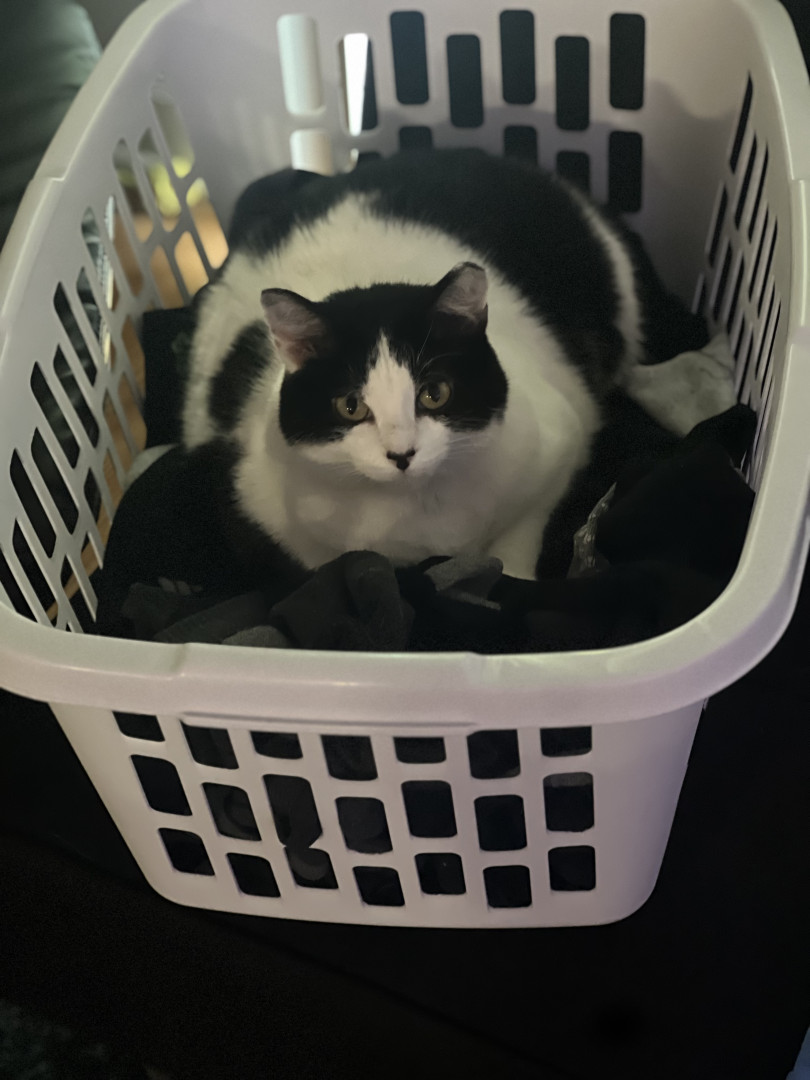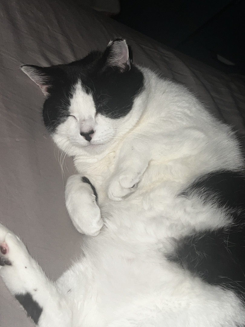 A lazy cuddle bug who randomly becomes a zoomie gremlin. Super social, belly-rub obsessed, clingy, and proudly demands all the attention.