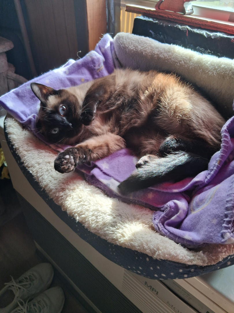 Mama Kitty loves to cuddle. She's very playful love's attention. And loves to be with her Mommy.She is my baby girl