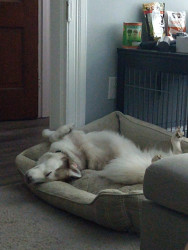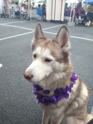 Mania is a husky but she is the calmest pup. Her favorite pass time is cuddling and sleeping. She was perfect for service dog training.